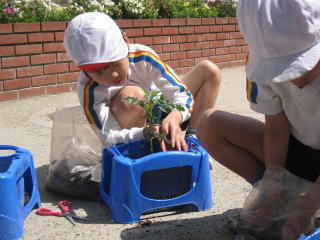 B最後に苗の周りにしっかり水をまきました。 (そろーり、そろーりおおきくなあれ。) ![]() |